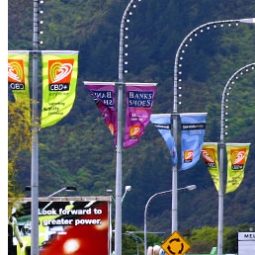 For Streetflags, which are normally seen from only 6-10 metres away, dye-screen printed flags have significant quality advantages and provide much greater value in the short and long term.