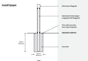FLAGPOLE MOUNTED OVER GALVANISED GROUND TUBE IN CONCRETE